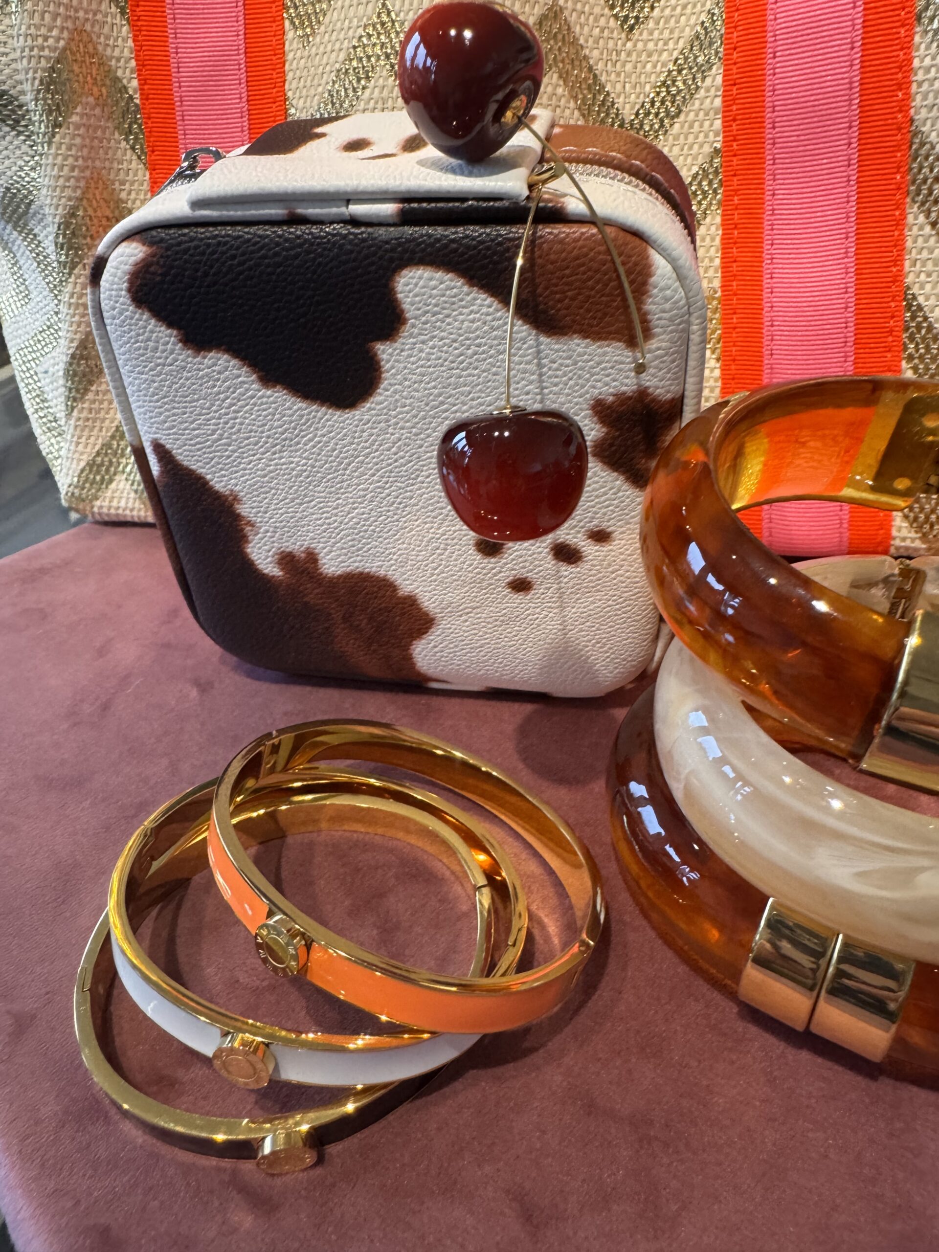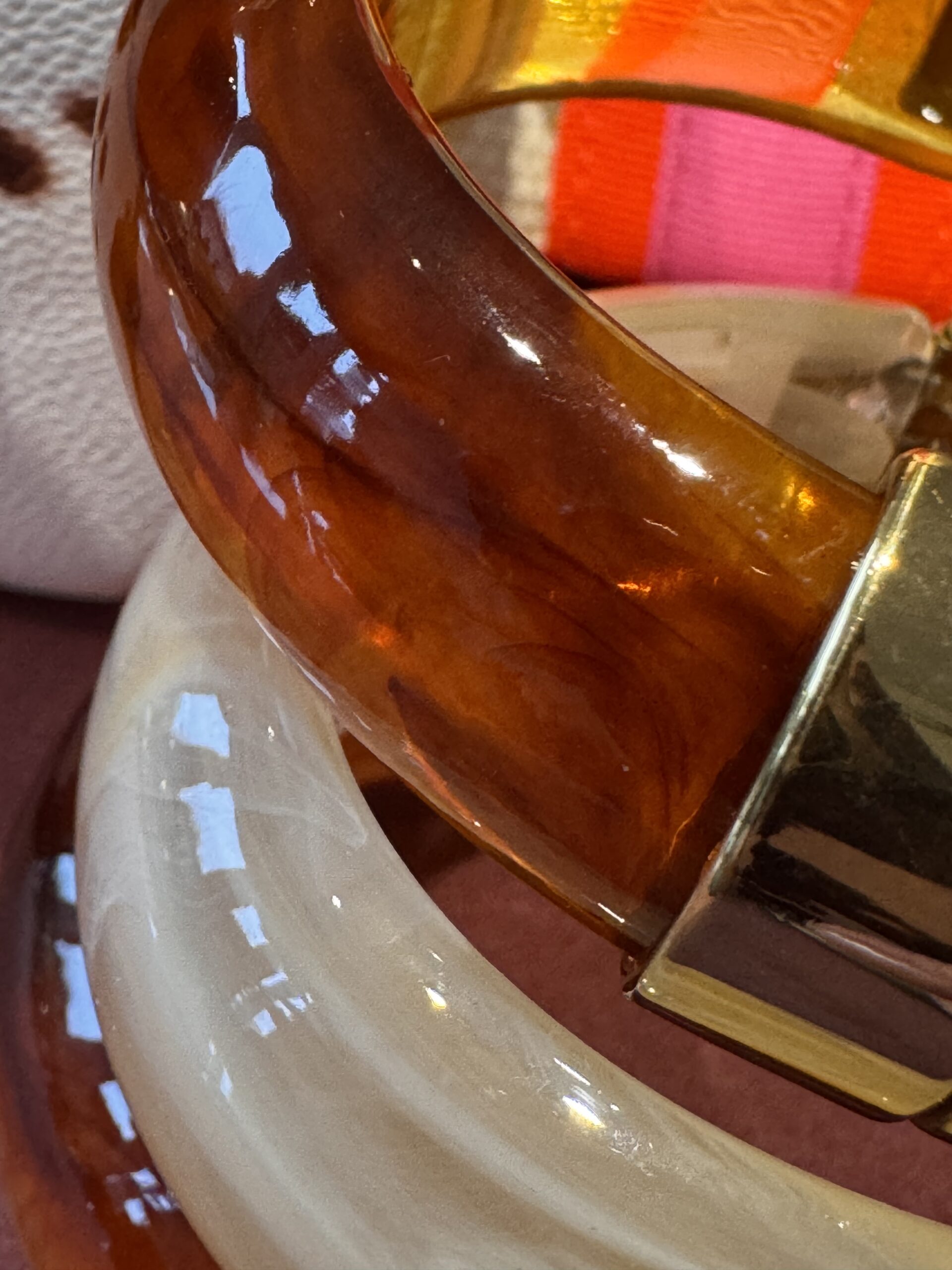 18k gold plated stainless steel hinge and clasp with acrylic bangle -cream colour.