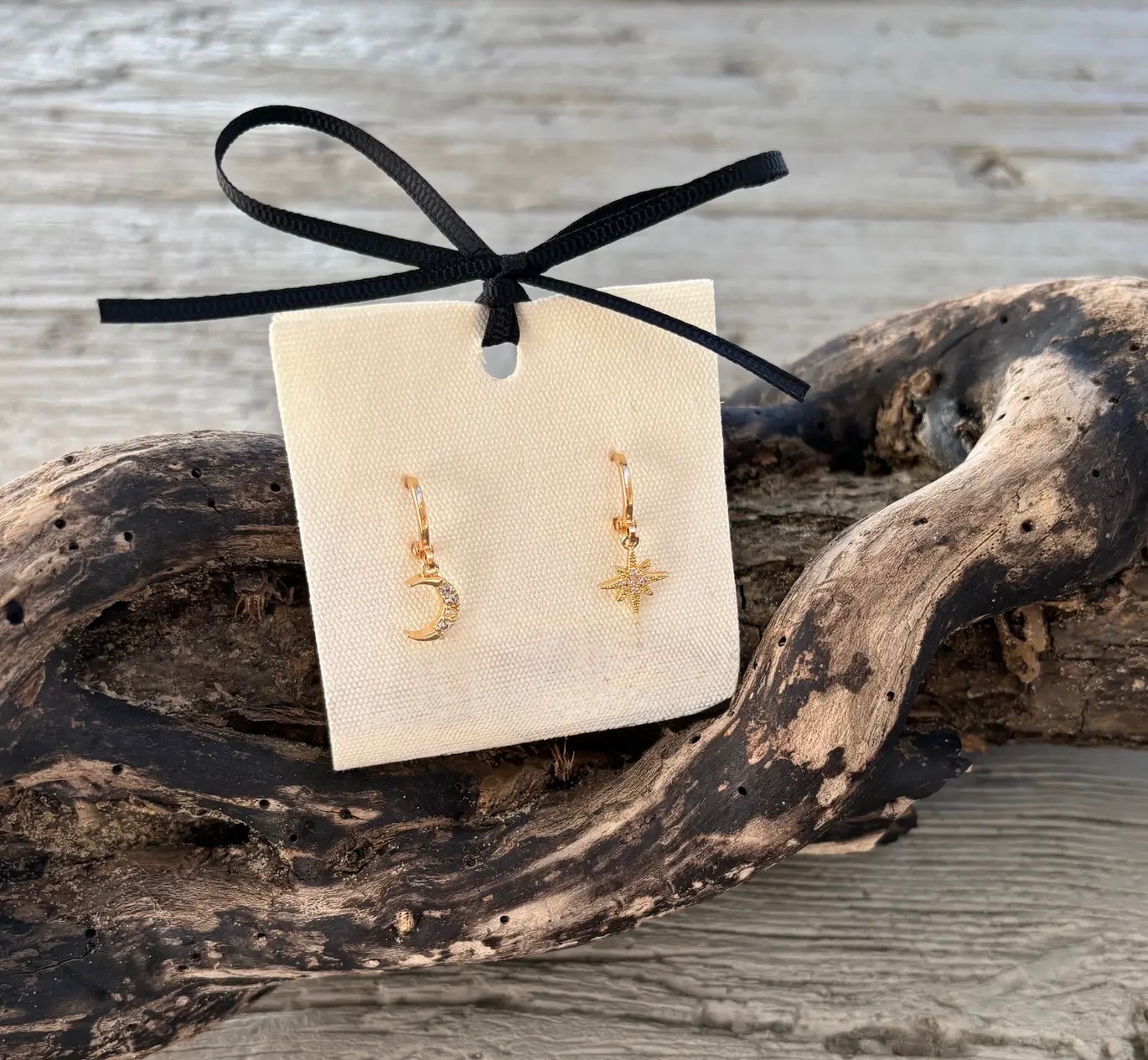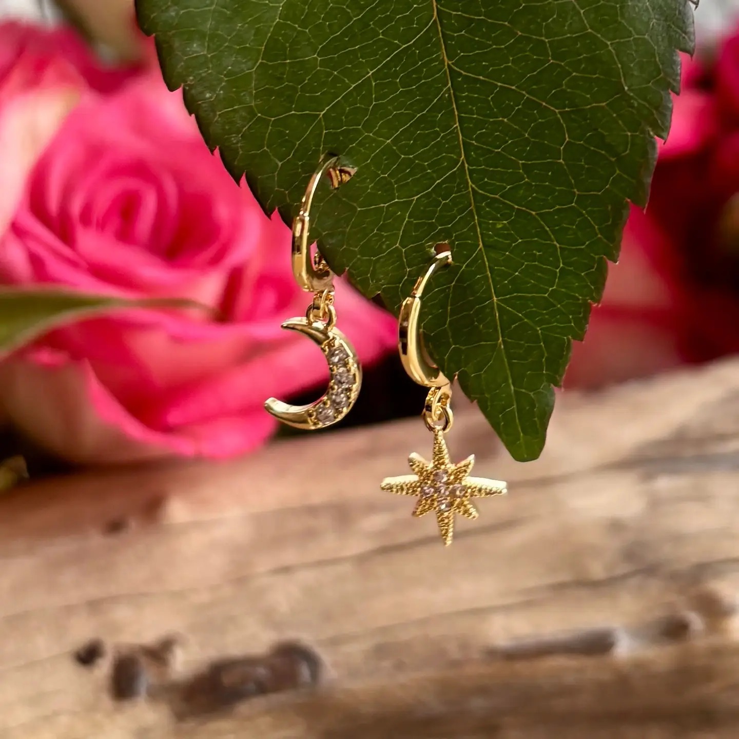 Mismatched Star & Moon Hoop EarringsMismatched Star & Moon Hoop Earrings