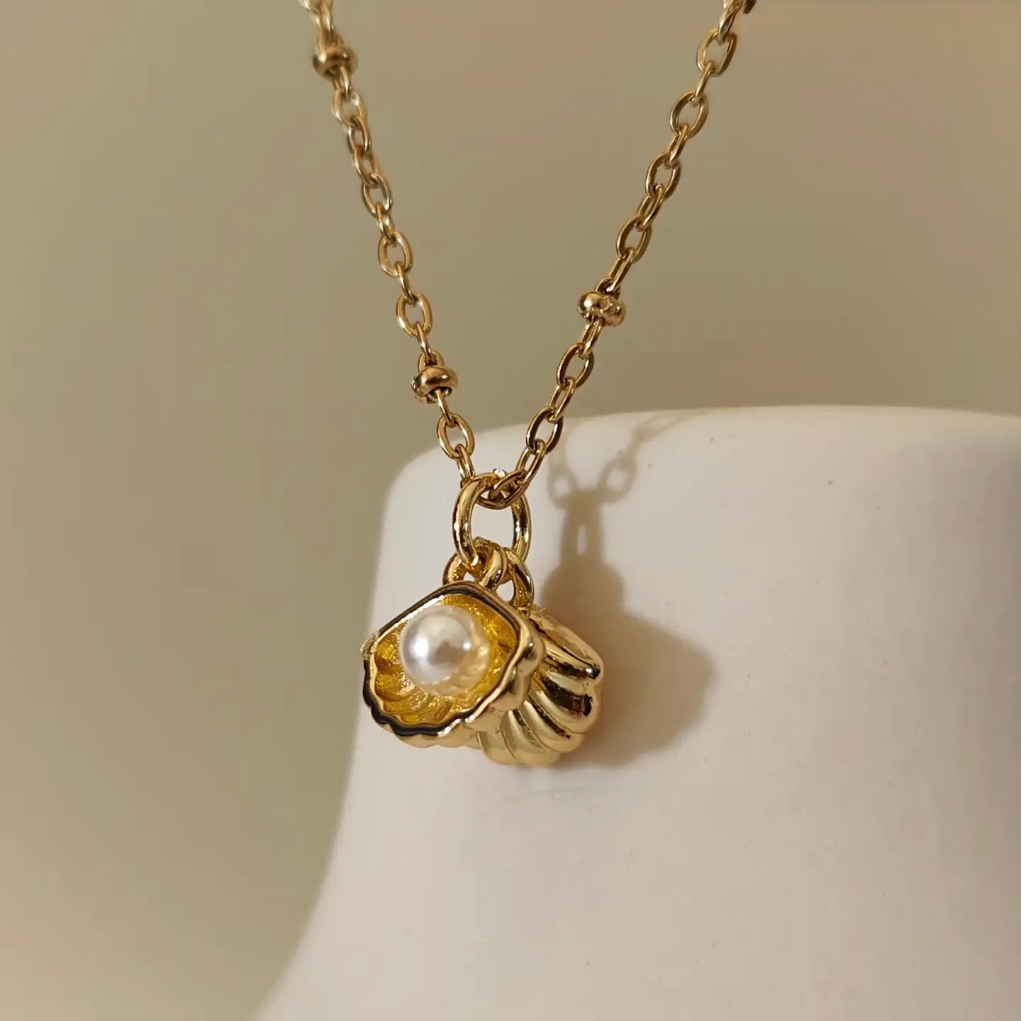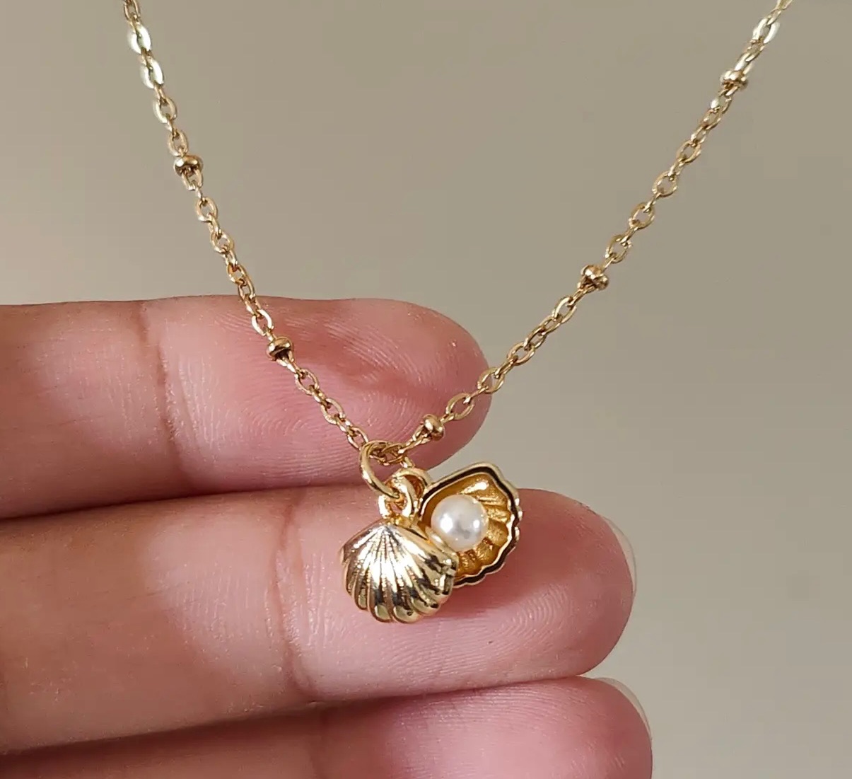 Open Seashell & Pearl Pendant NecklaceAvailability: In stock