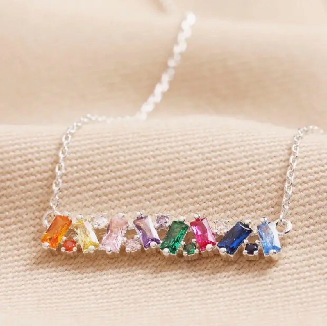 Rainbow Baguette Crystal Bar Necklace in silverRainbow Baguette Crystal Bar Necklace in silver