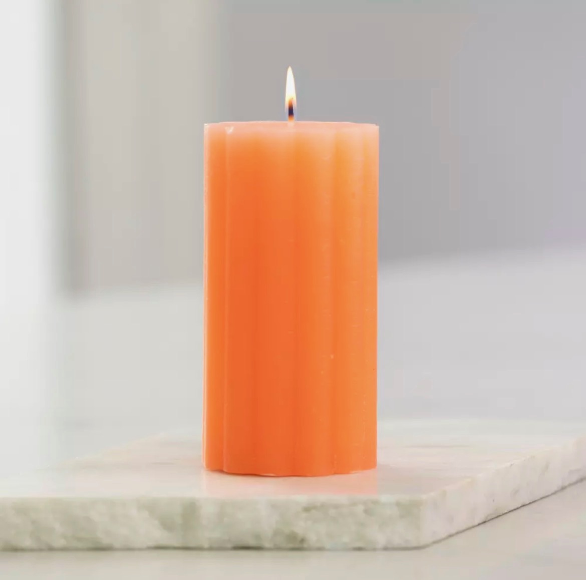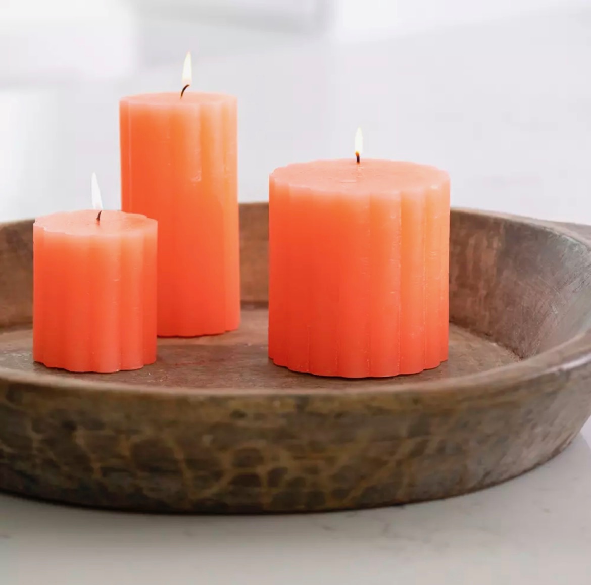Rustic Scalloped Pillar Candle Coral