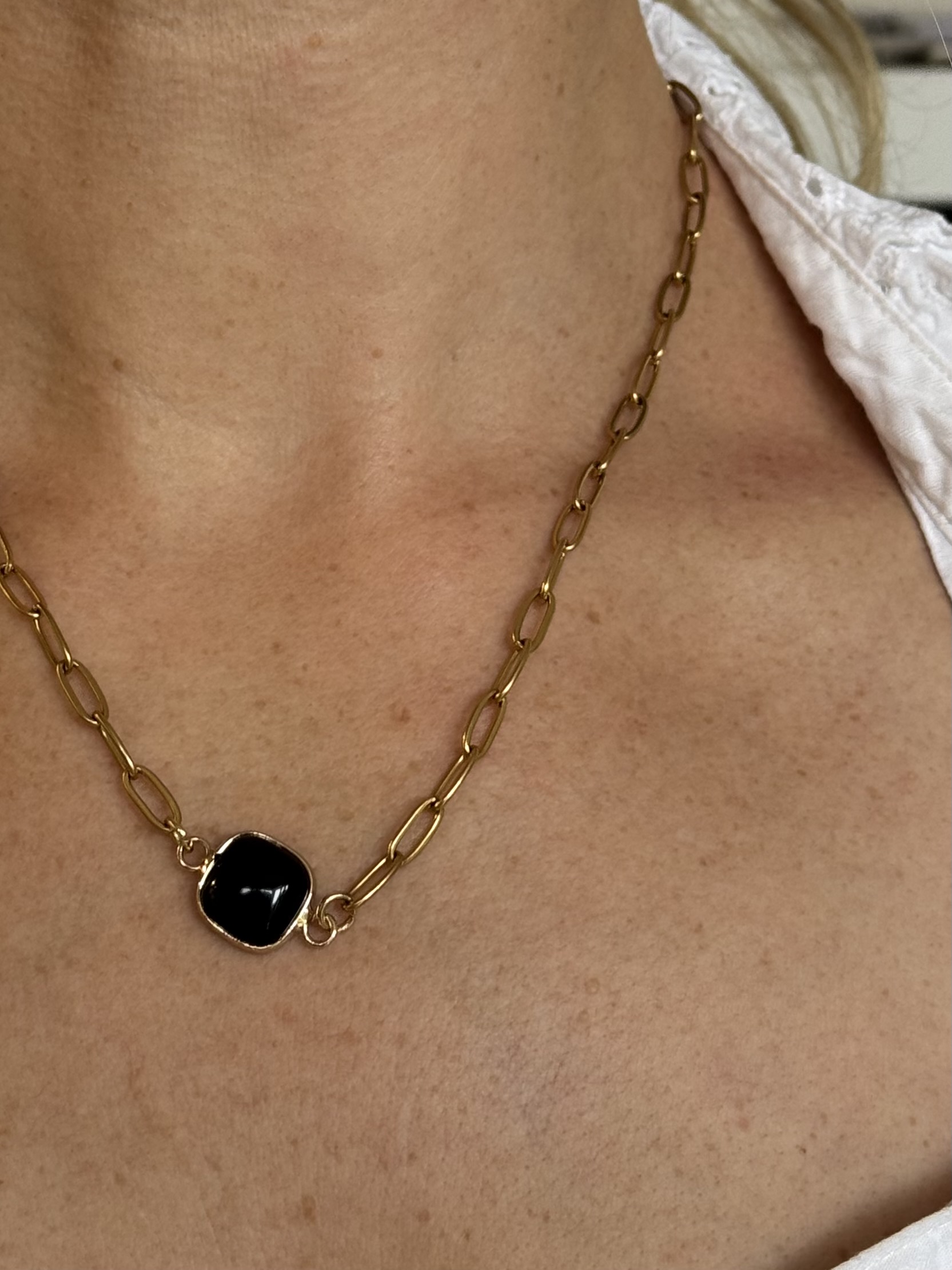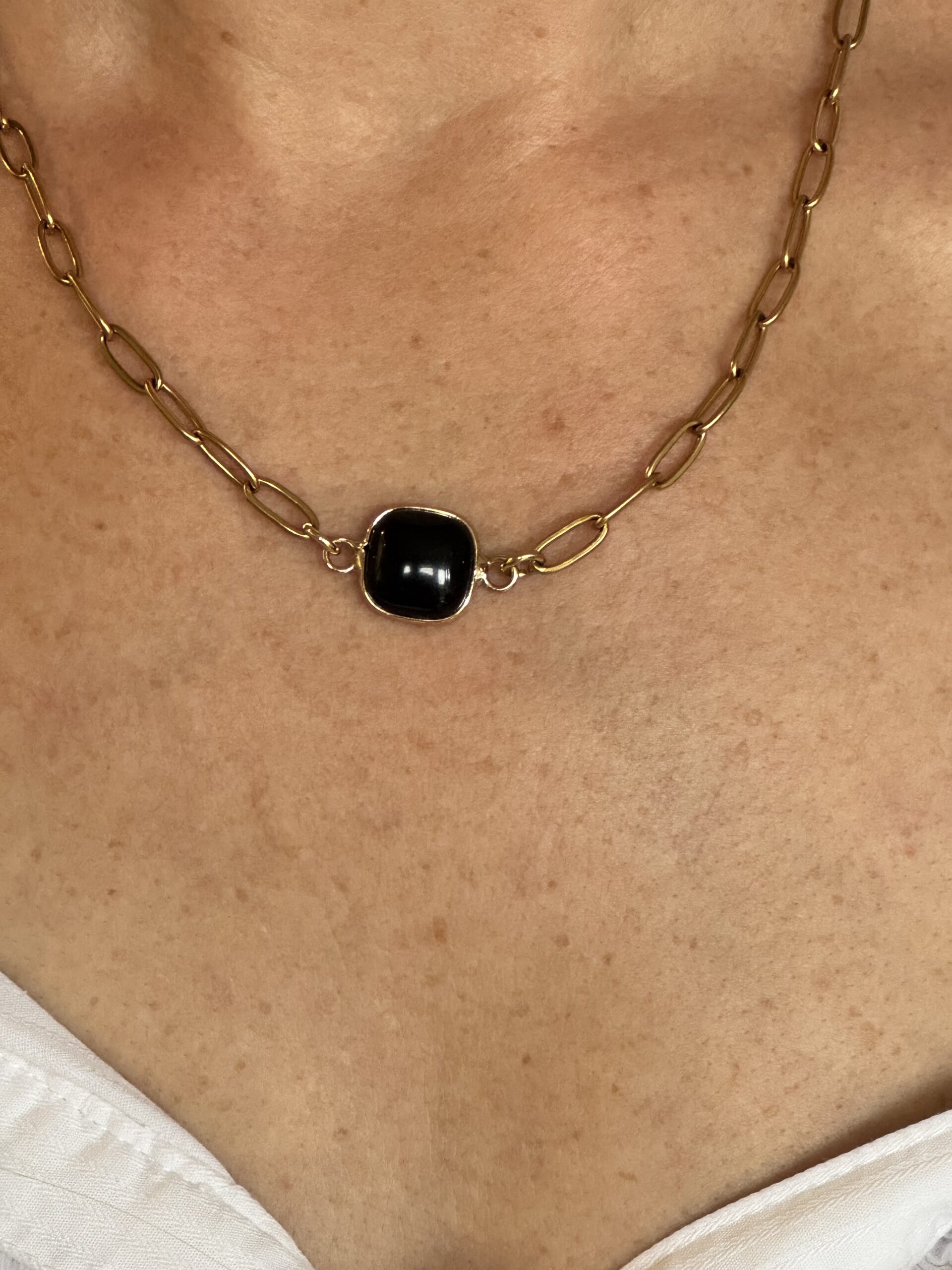 Square Gemstone Paper Clip Necklace Black JadeAvailability: In stock
