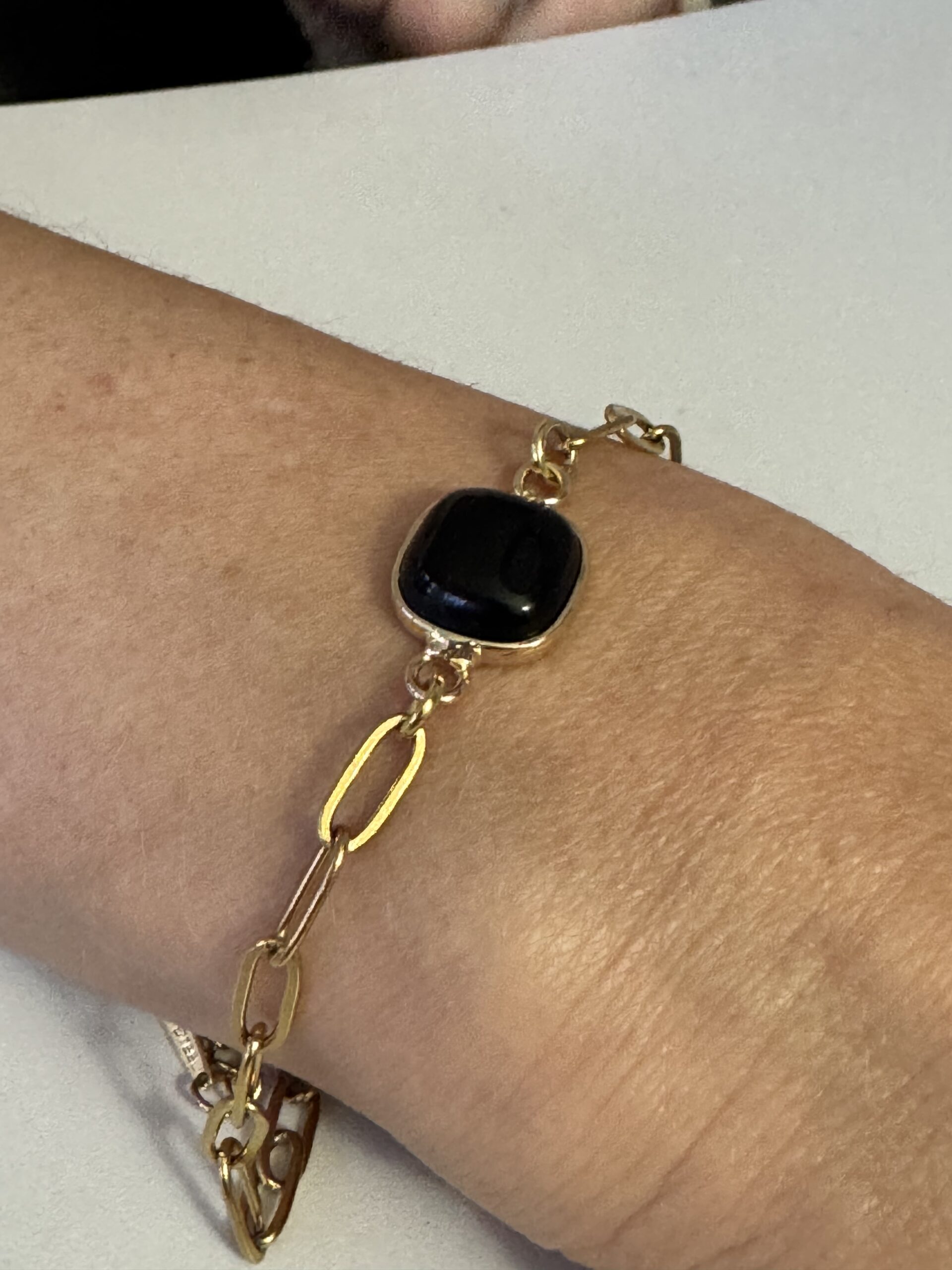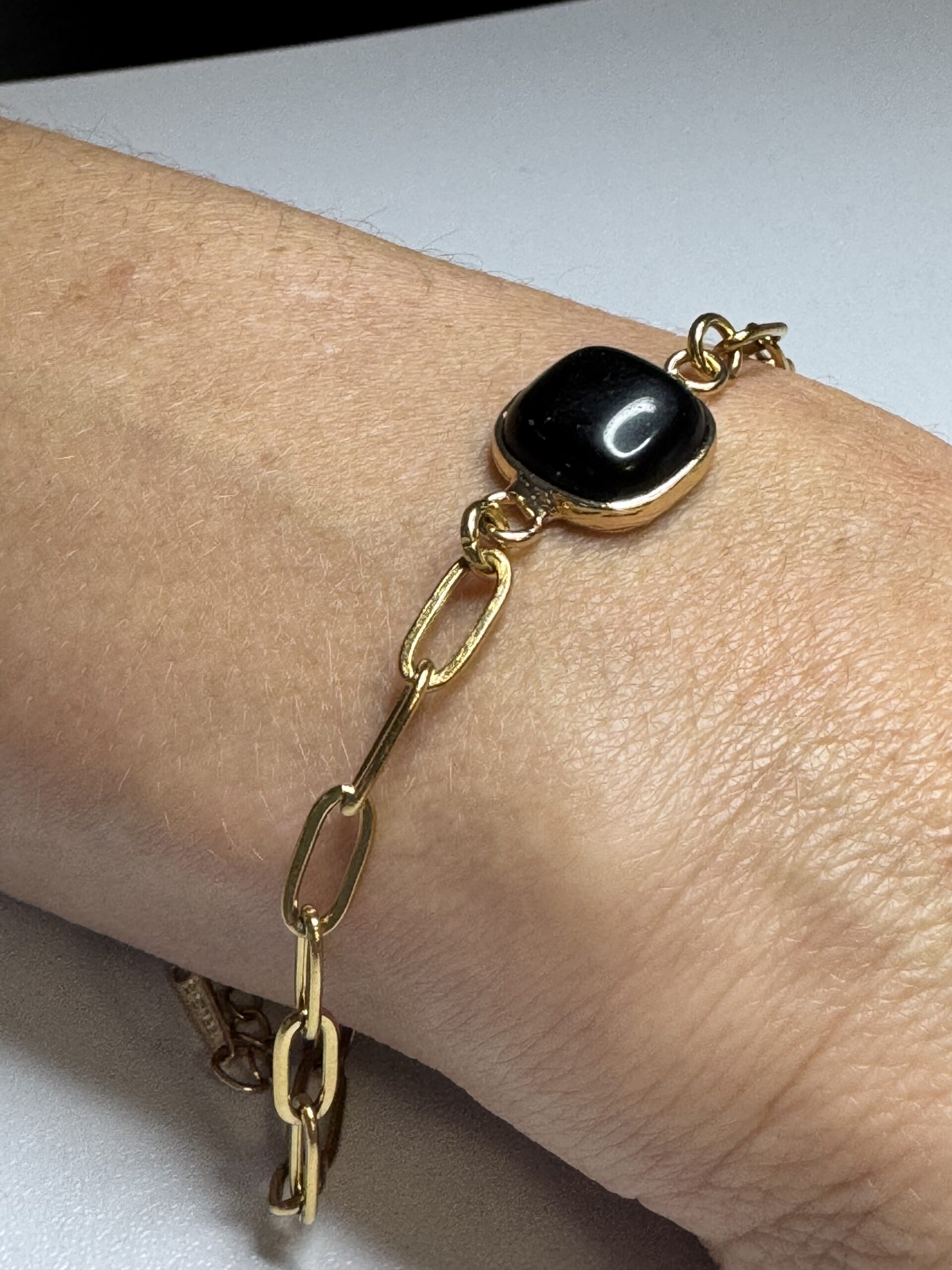 Square Gemstone Paperclip Bracelet Black JadeAvailability: In stock