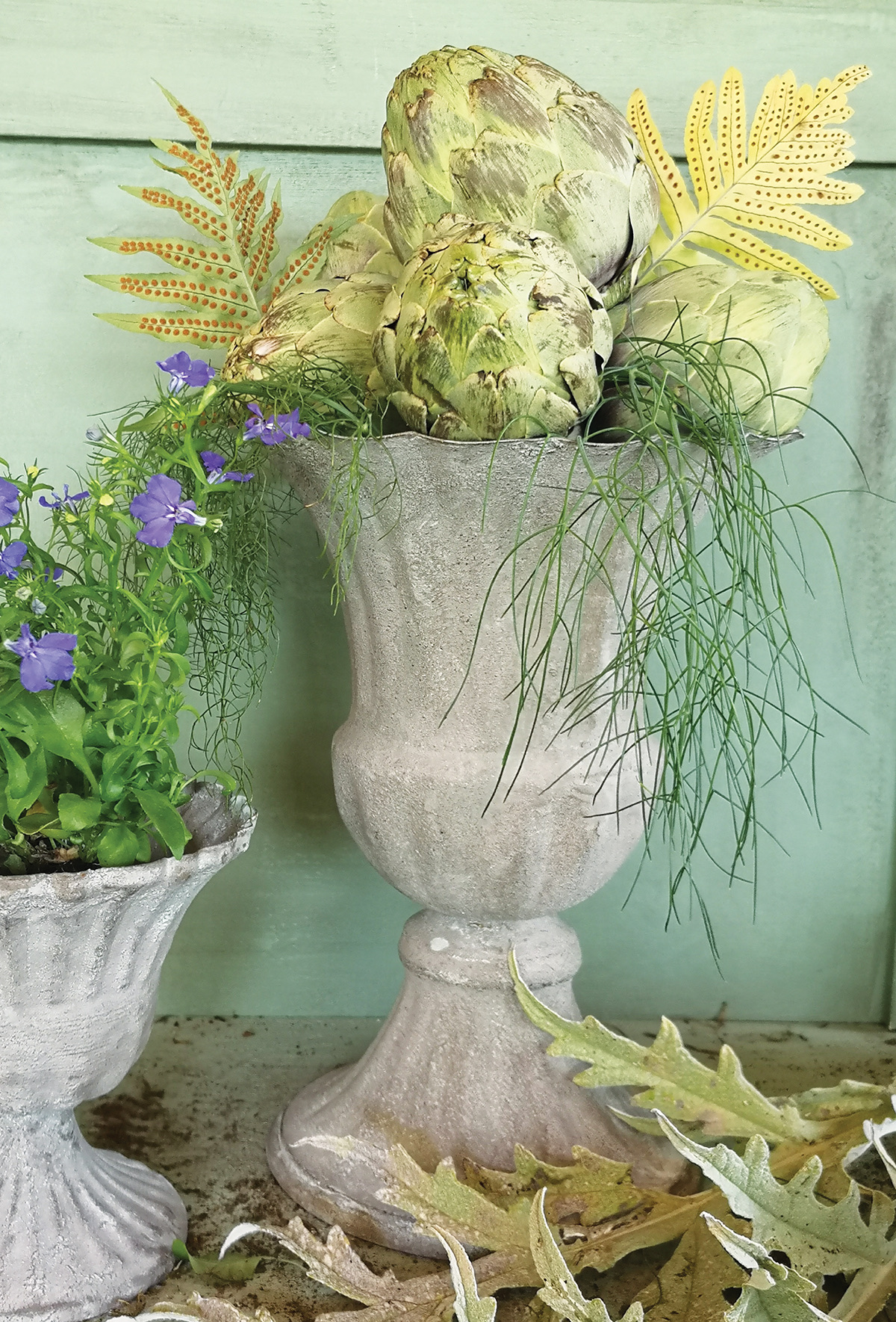 Tin with antique grey stone effect, measuring 23cm high, opening suitable for 9cm plant pot